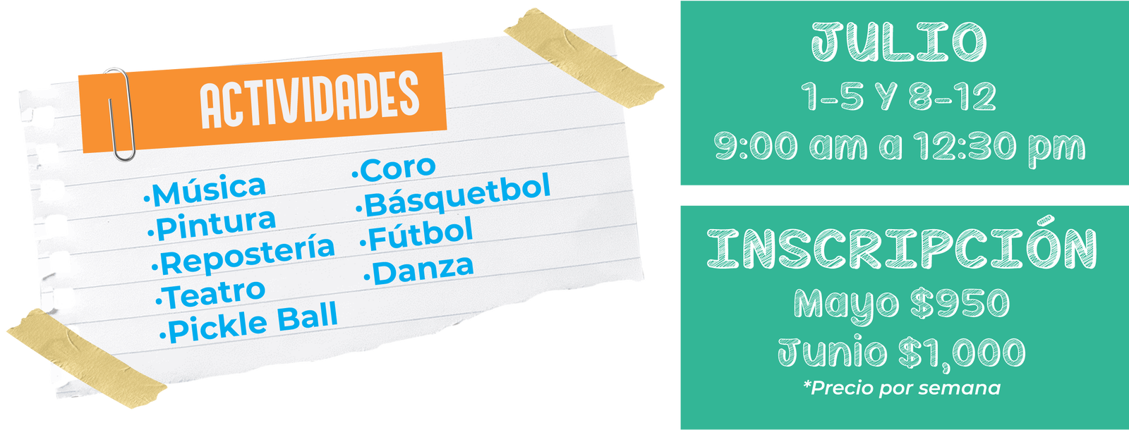 Cada inscripción cubre una semana llena de aprendizaje, diversión y